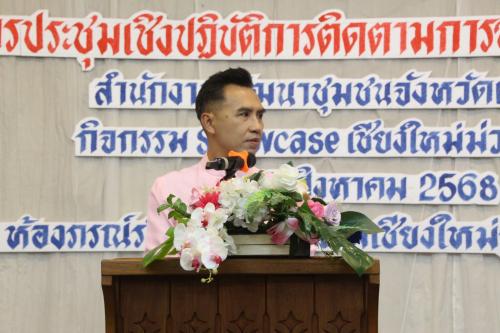นายวีรพงศ์ ฤทธิ์รอด รองผู้ว่าราชการจังหวัดเชียงใหม่ เป็นประธานเปิดการประชุมประชุมเชิงปฏิบัติการติดตามการขับเคลื่อนการดำเนินงานสำนักงานพัฒนาชุมชมชนจังหวัดเชียงใหม่ ระดับโซนอำเภอ ในกิจกรรม Showcase เชียงใหม่ม่วน Joy 68 สานสัมพันธ์ Connect & Support